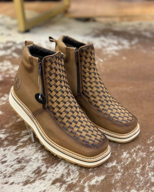 New Double Zip Braided Leather Ankle Boots