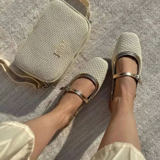 Italian hand-woven cotton and linen low-heeled loafers