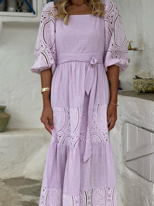 Lace-Stitch Square-Neck Dress