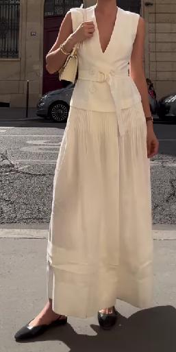 Belted Sleeveless Pleated Midi Dress